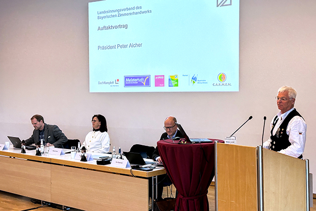 Die Zimmerer Unterfrankens trafen sich am 3. Februar 2026 in Marktheidenfeld zur jährlichen Bezirksversammlung. Dazu begrüßten der Präsident des Landesinnungsverbandes des Bayerischen Zimmererhandwerks (LIV) Peter Aicher, Hauptgeschäftsführer Kai Gajewski sowie Bezirksvorsitzender Stefan Weyer neben 40 Teilnehmenden aus der Branche auch die Landrätin des Landkreises Main-Spessart Sabine Sitter und den Ersten Bürgermeister der Stadt Marktheidenfeld Thomas Stamm.